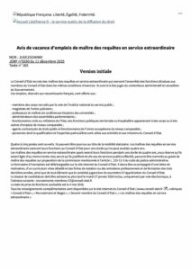 Avis de vacance d’emplois de maître des requêtes en service extraordinaire